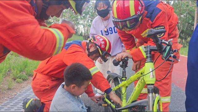 融媒5月13日讯(记者 武峻平 通讯员 孙华晓 摄影报道)5月11日18时许,一小男孩在开发区福莱山文化公园骑自行车游玩时链条突然掉了下来,男孩在修理过程中右手中指不慎被卡在自行车链条与